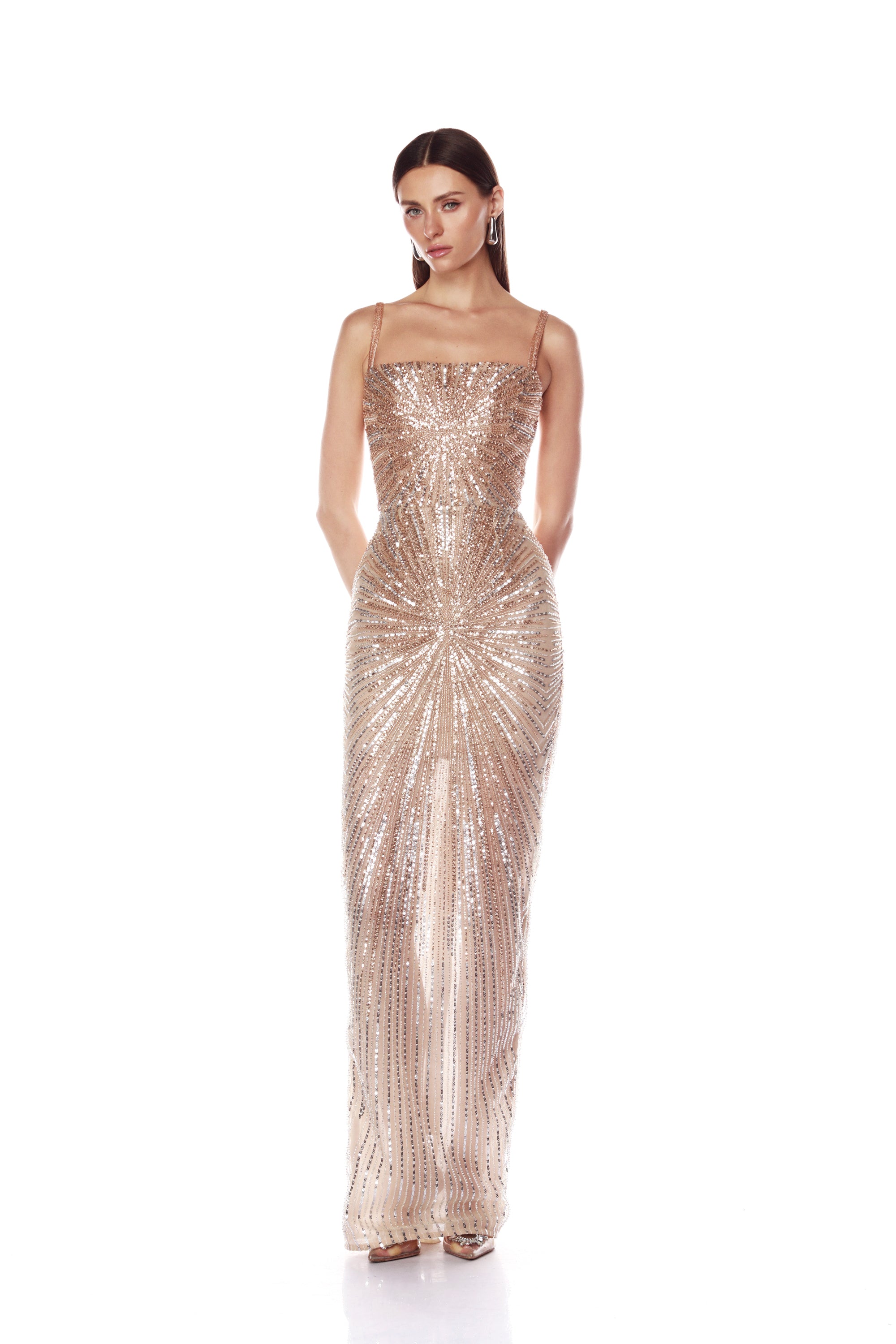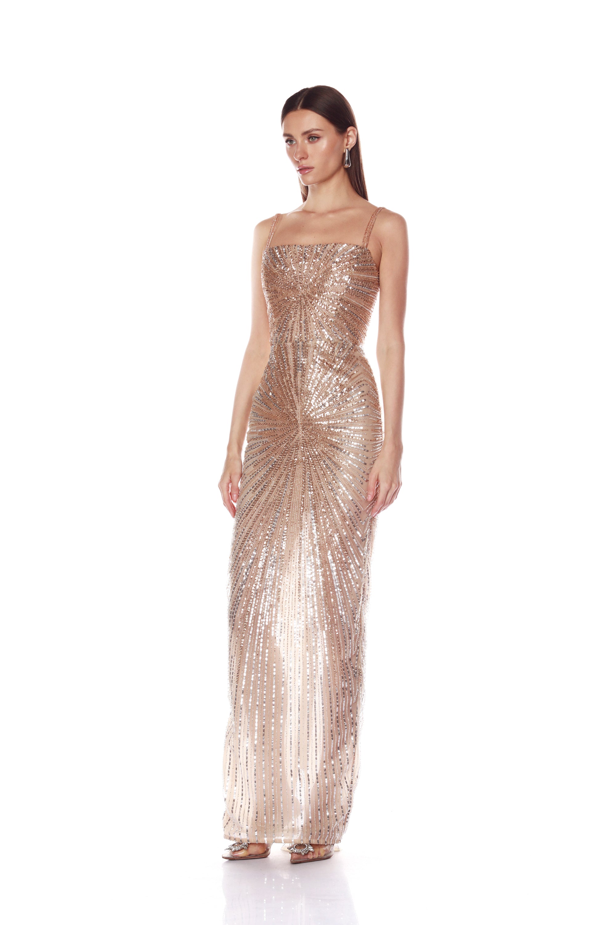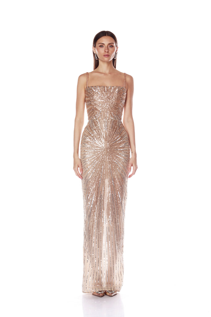 Dahlia Champagne Maxi Dress with Straps