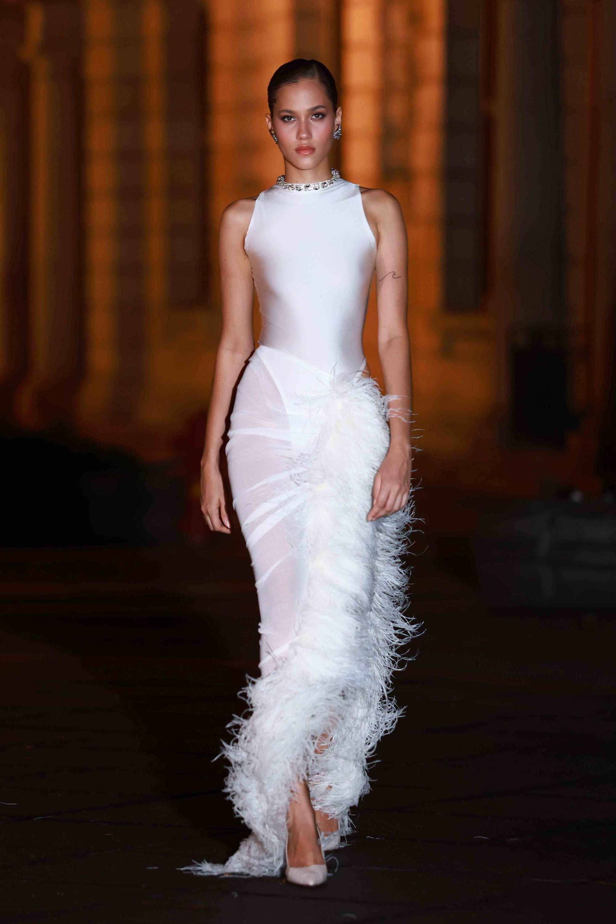 Morocco Blanc Asymmetrical Diamond Gown