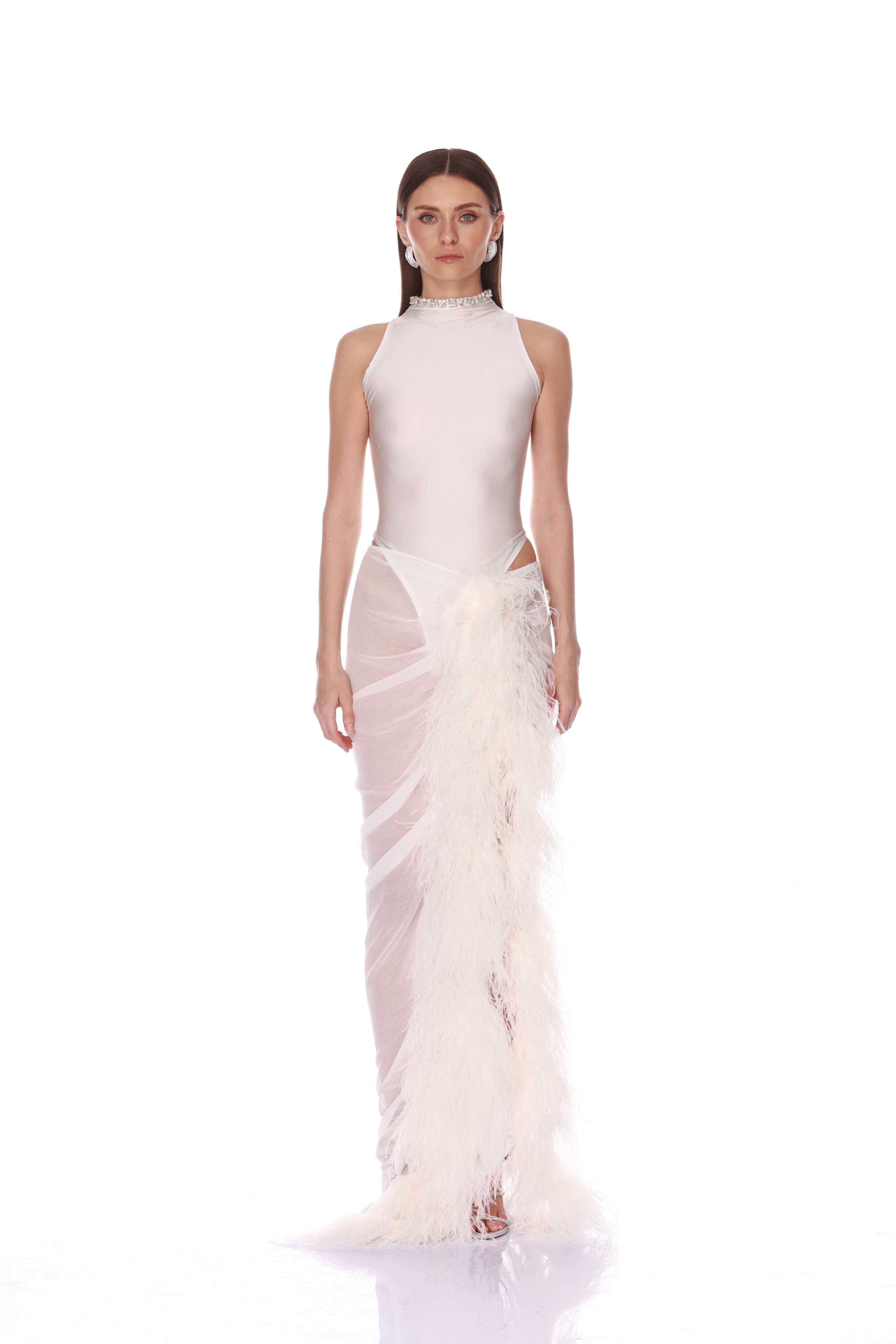 Elle Blanc Skirt + Gaia Blanc Mesh Bodysuit