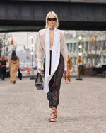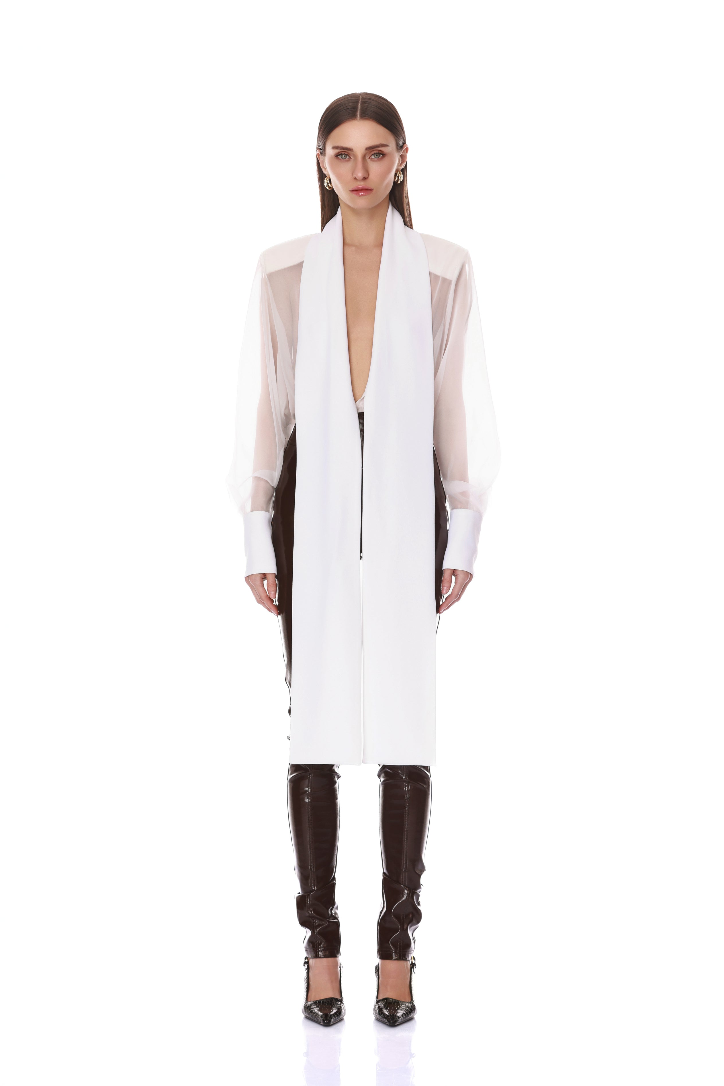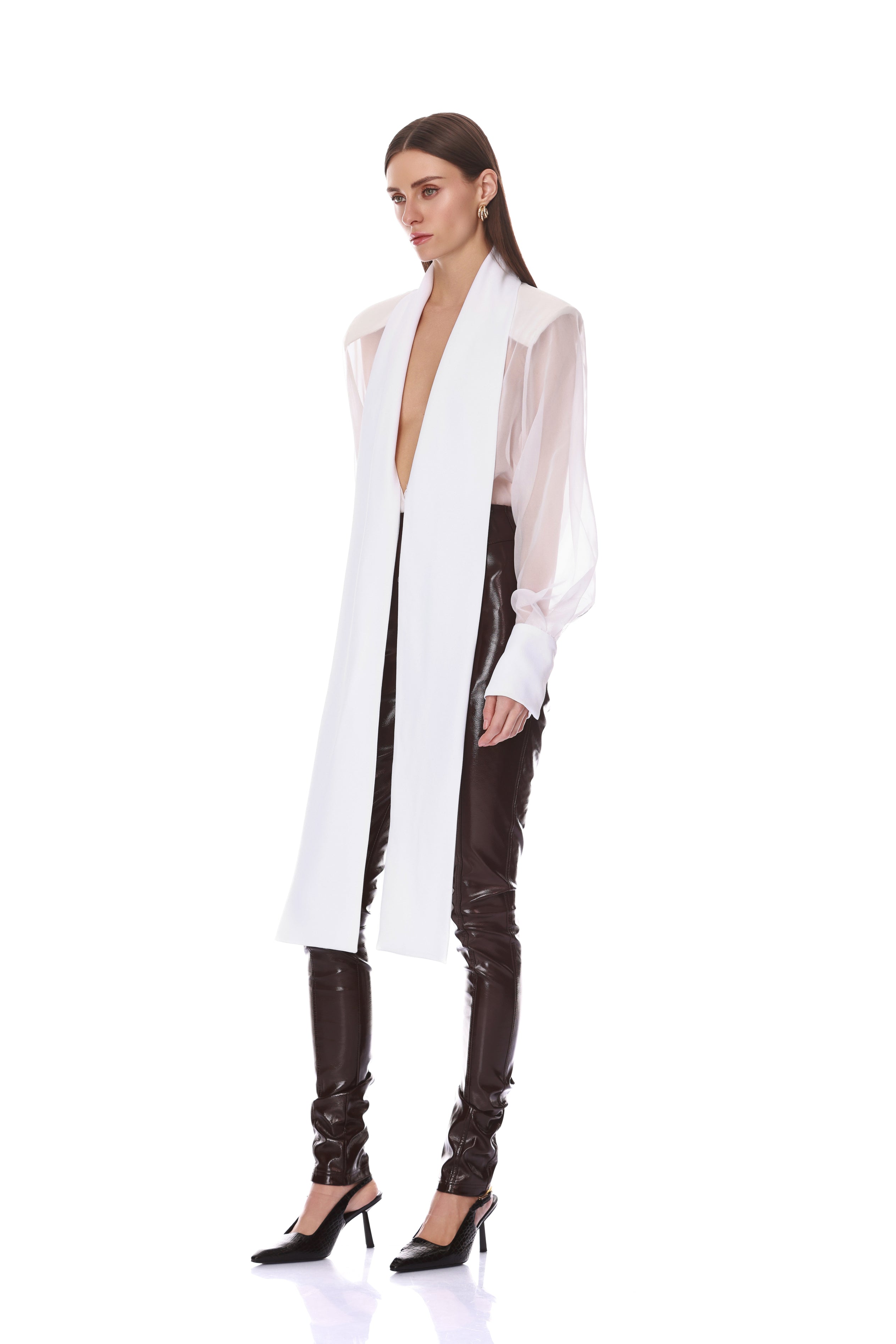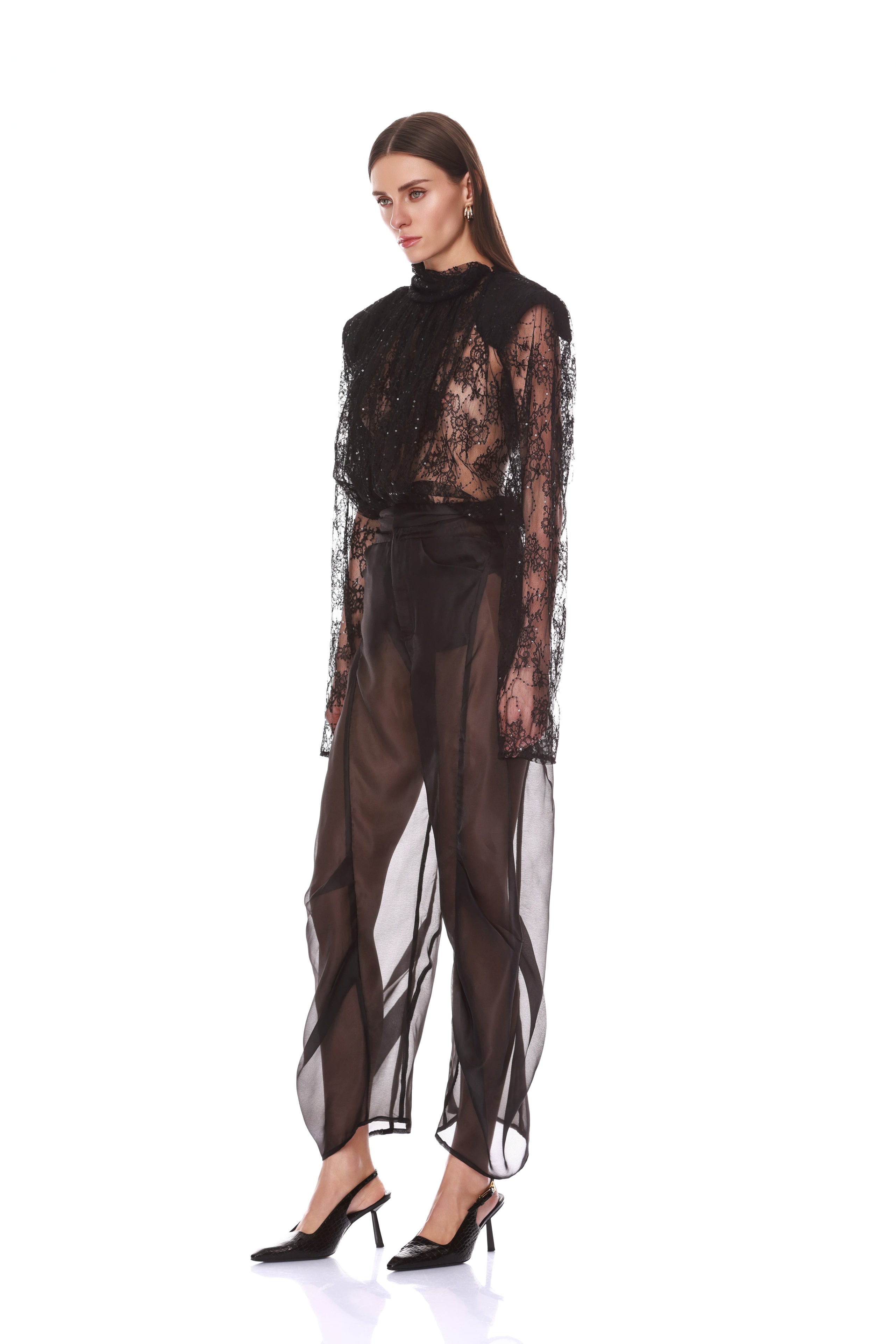 Look 5: Long Sleeve Sheer Blouse with Tie + Organza Pant