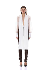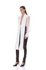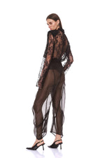 - Long Sleeve Sheer White Blouse with Tie + Black Organza Pant