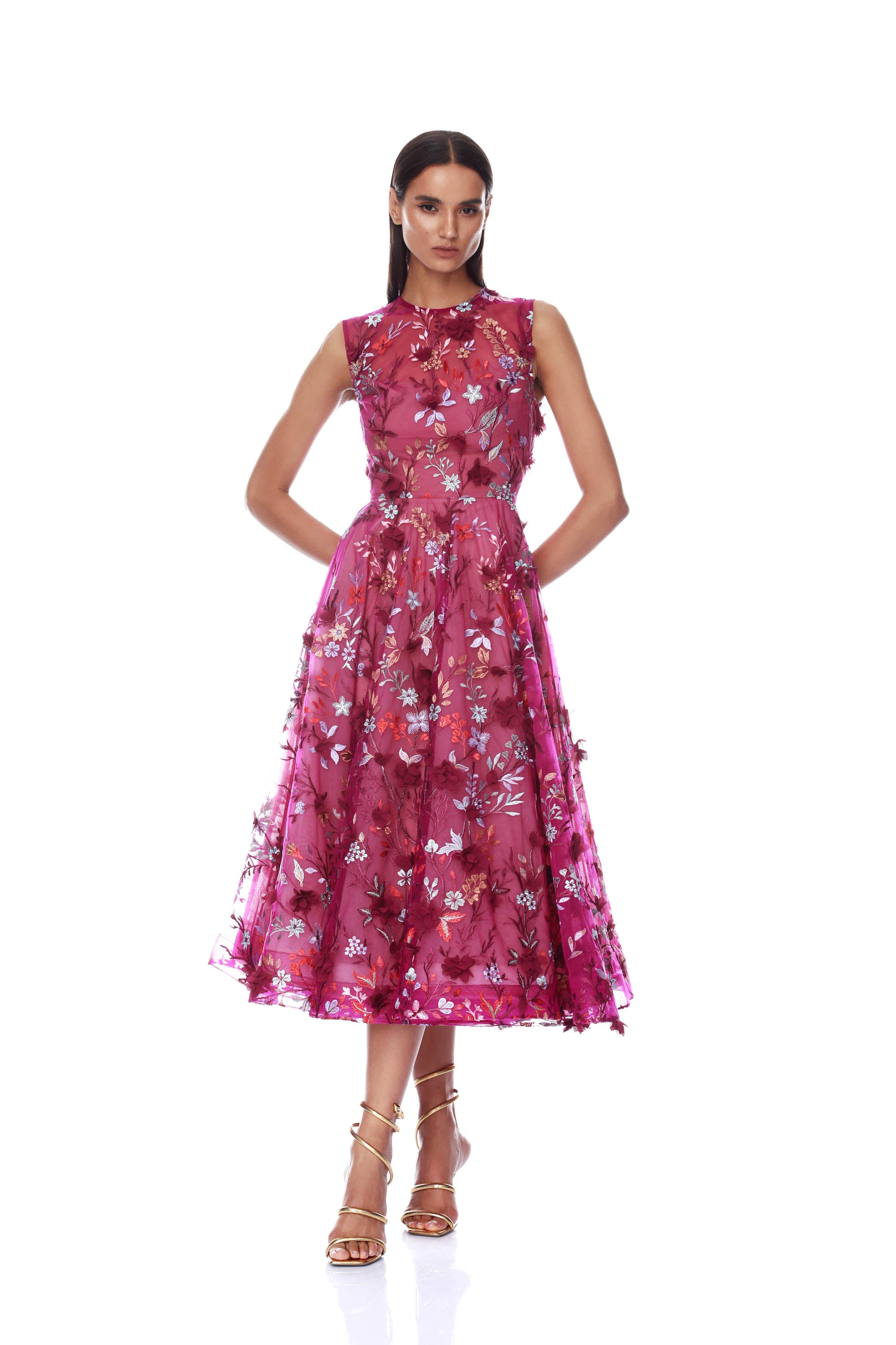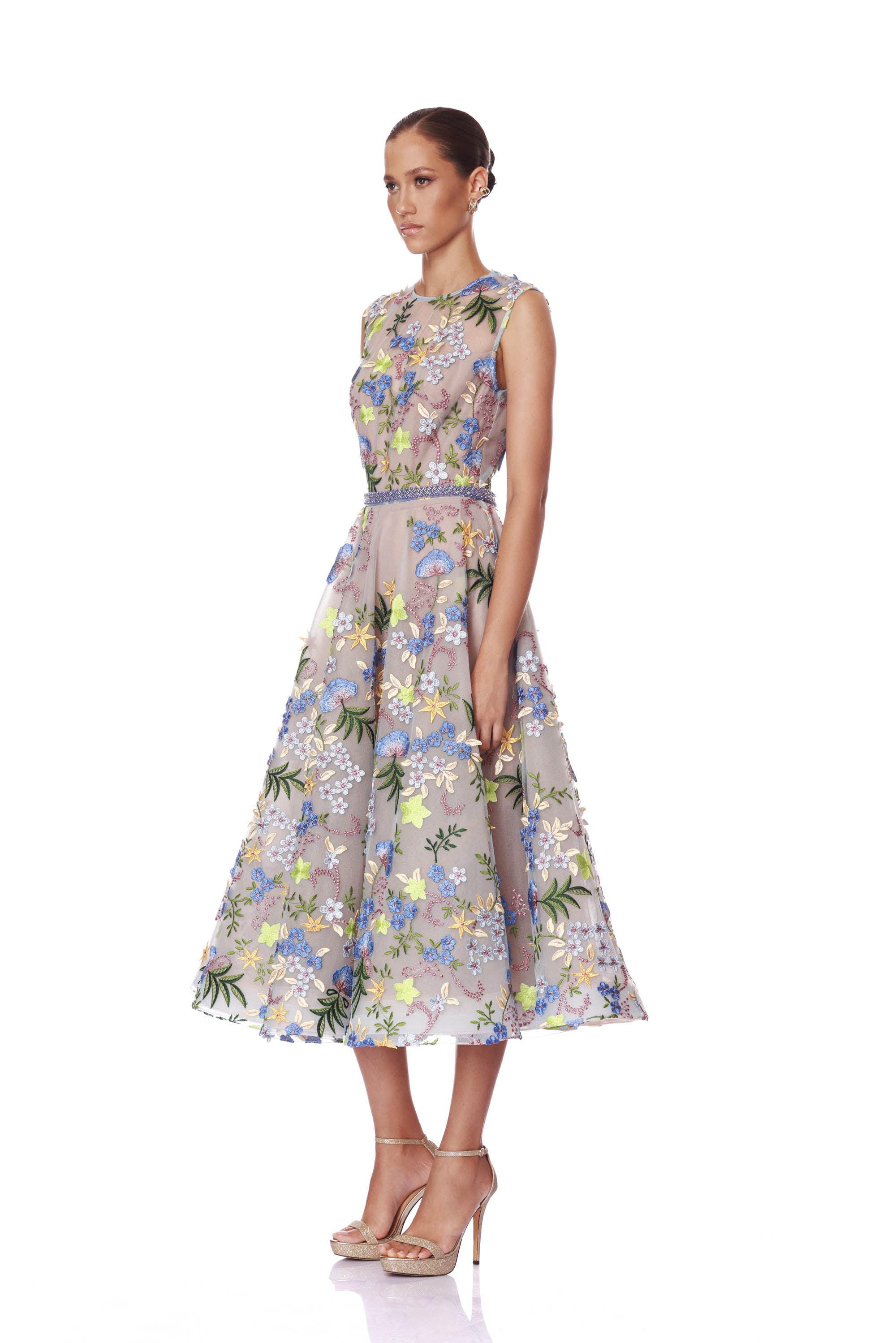 Mademoiselle Embroidered Gold Floral Midi Dress