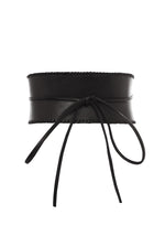 The Briana Faux Leather Belt is a bold accessory featuring a wide waistband adorned with a waist tie, ensuring a statement look.