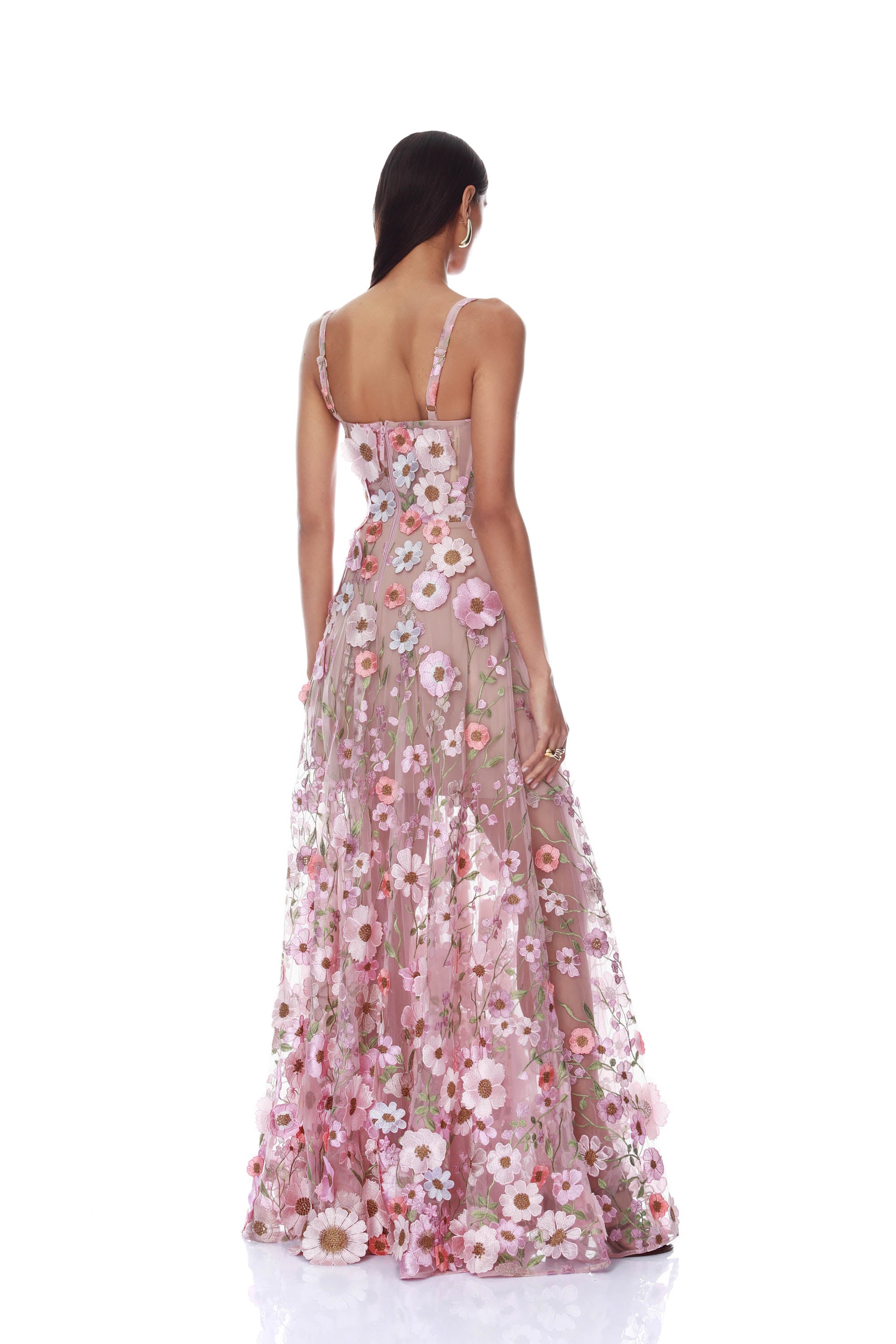 Venice 3D Floral Jasmine Pink Multi Maxi Gown
