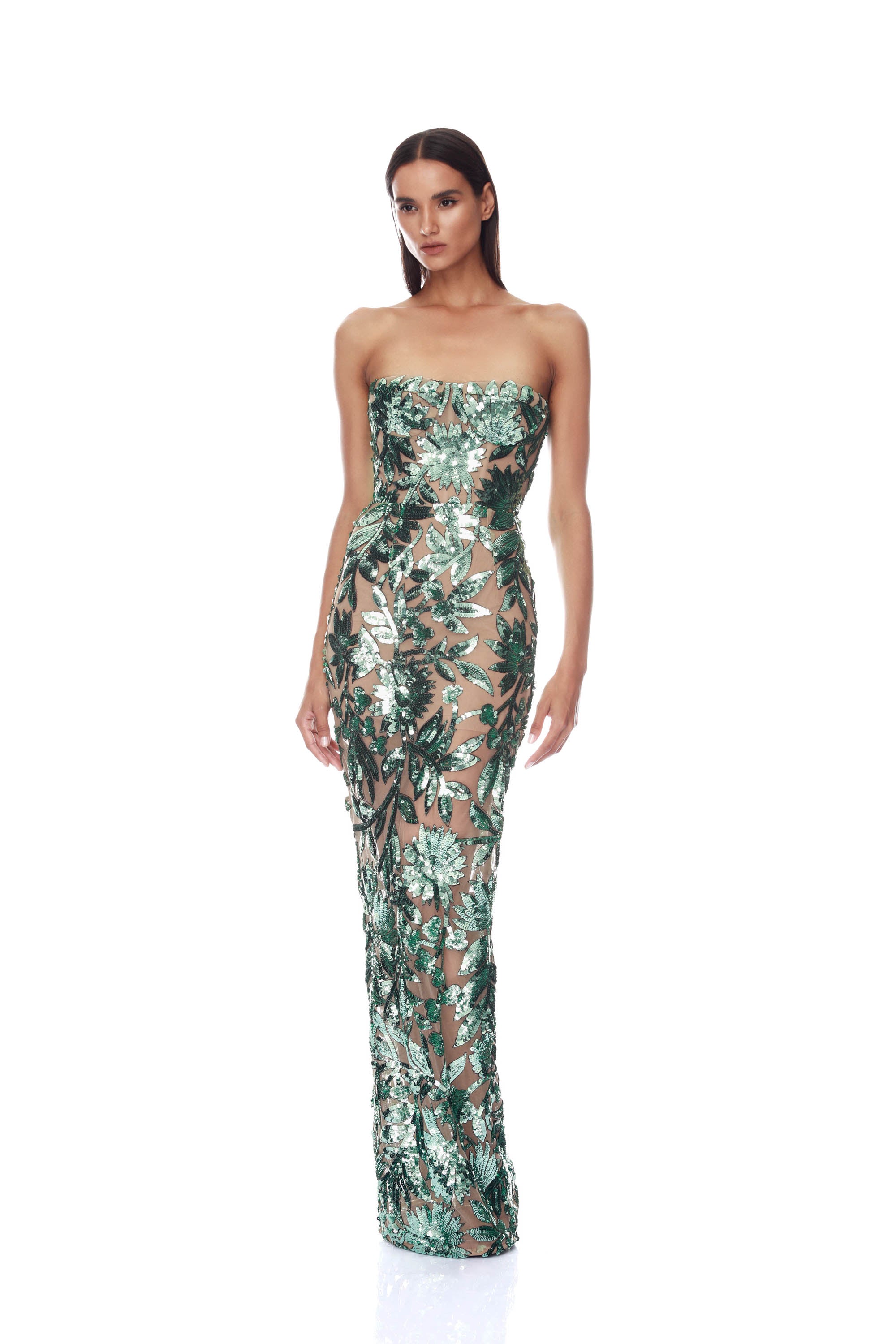 Capri Sequin Dahlia Blush Strapless Maxi Dress